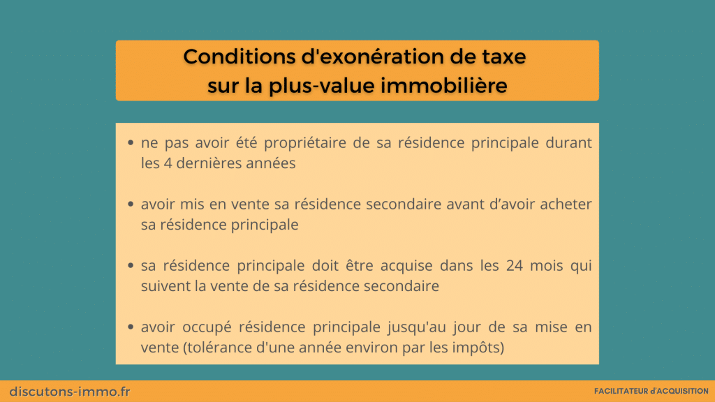 - vous devez ne pas avoir été propriétaire de votre résidence principale durant les 4 dernières années qui précèdent la vente