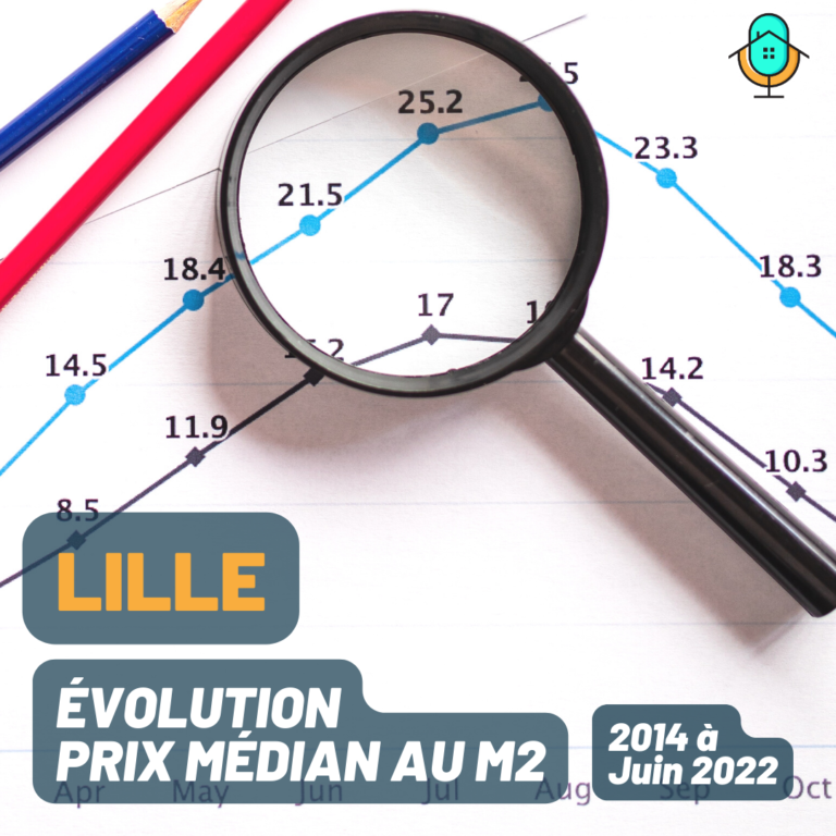 On constate une évolution du prix au m2 médian des appartements à Lille d’environ 34% entre 2014 et Juin 2022.