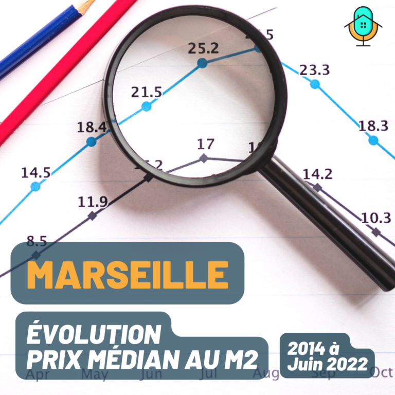 Voici néanmoins l’évolution du prix médian au m2 constaté sur la ville de Marseille globalement. Vous pouvez retrouver ces mêmes données par arrondissements ci-dessous.