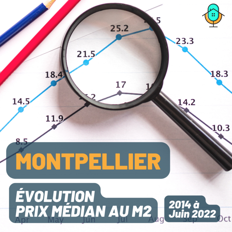 On constate une évolution du prix au m2 médian des appartements à Montpellier d’environ 30% entre 2014 et Juin 2022.