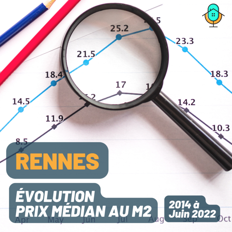 On constate une évolution du prix au m2 médian des appartements à Rennes d’environ 62% entre 2014 et Juin 2022.